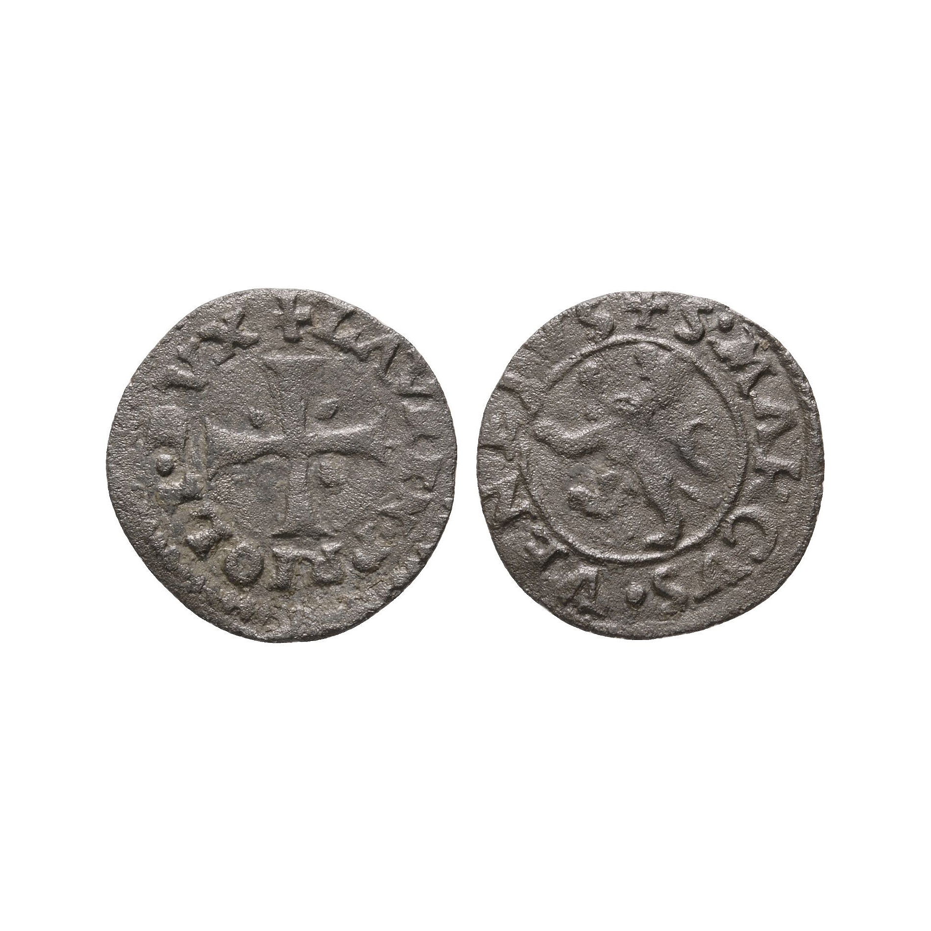 Obv: +LAVREN•PRIOLI DVX, cross with lozenges in the angles. Rev: +S•MARCVS•VENETVS, lion standing left. 0.43 grams, 14 mm.