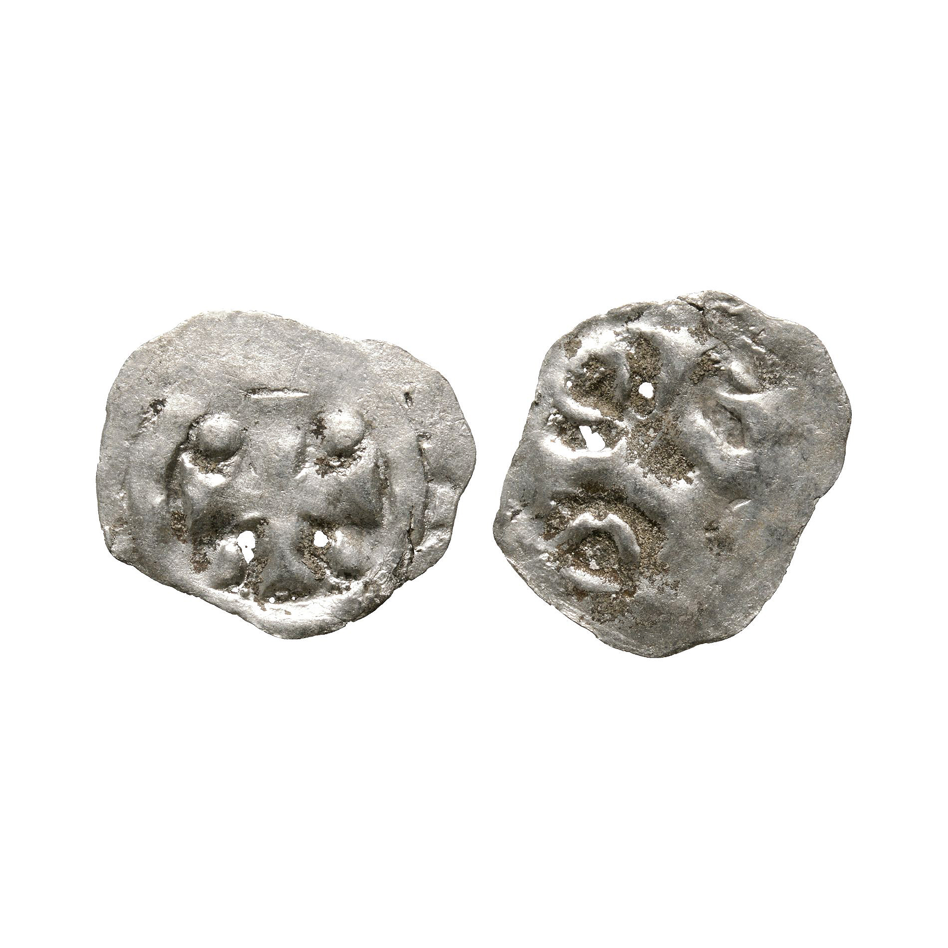 From the time of William the Conqueror. Obv: cross with pellet in each angle within inner circle, remains of legend around. Rev: cross with annulet in each angle within inner circle, remains of legend around. 0.45 grams, 17 mm.