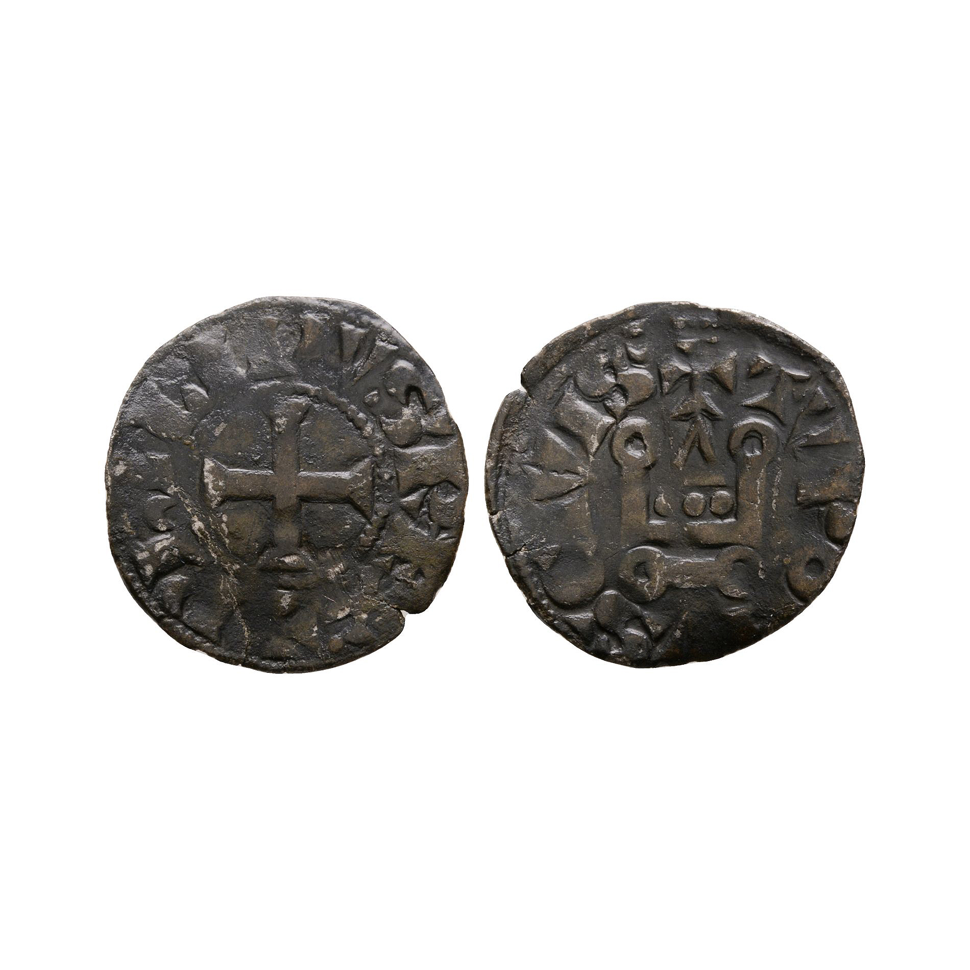 Obv: cross with PHILIPPVS REX legend. Rev: chapel with TVRONVS CIVIS legend. 0.94 grams.