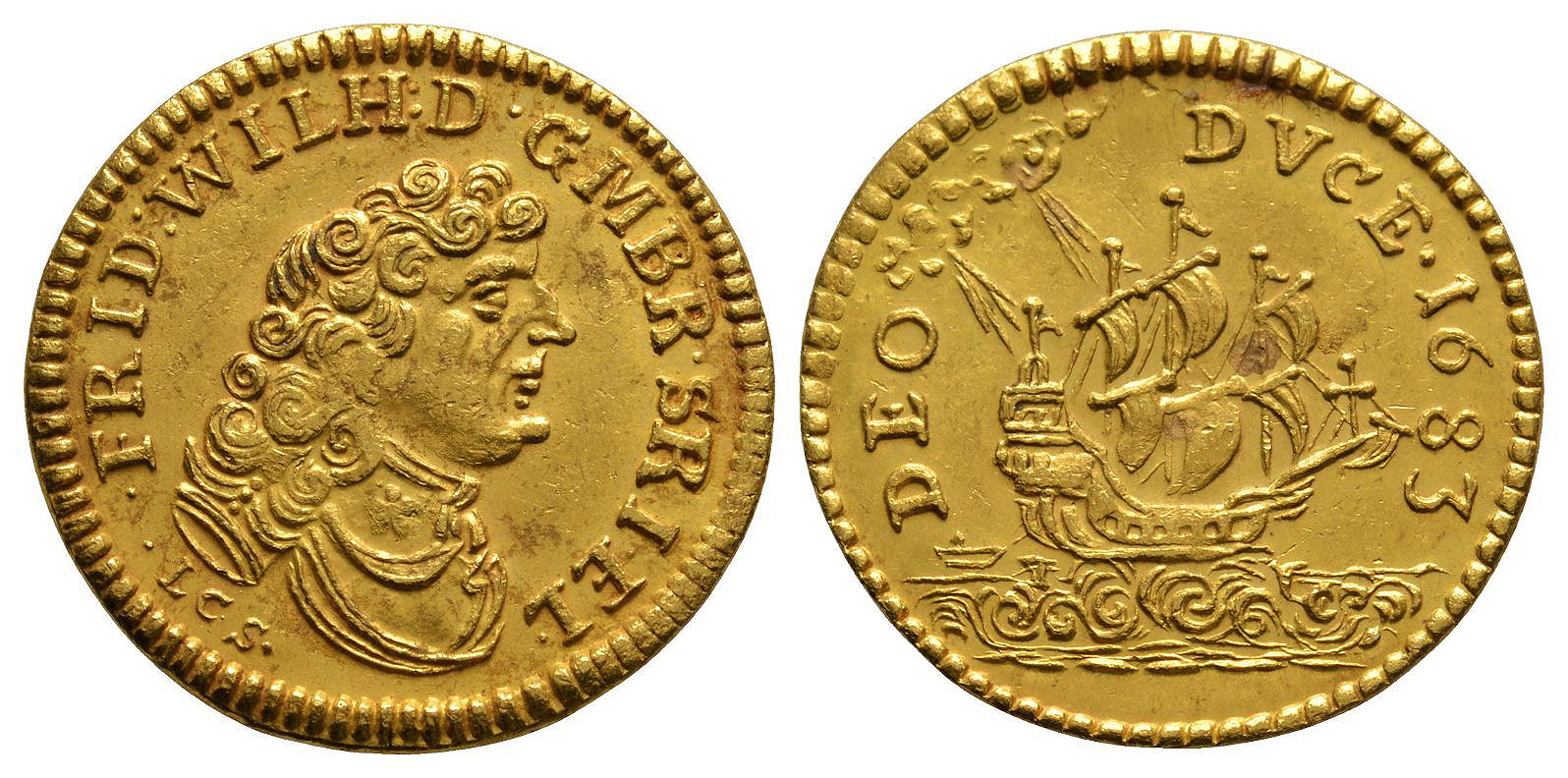 World Coins - German States - Brandenburg - Guinea Coast - 1683 - Gold Trade Ducat Dated 1683 AD