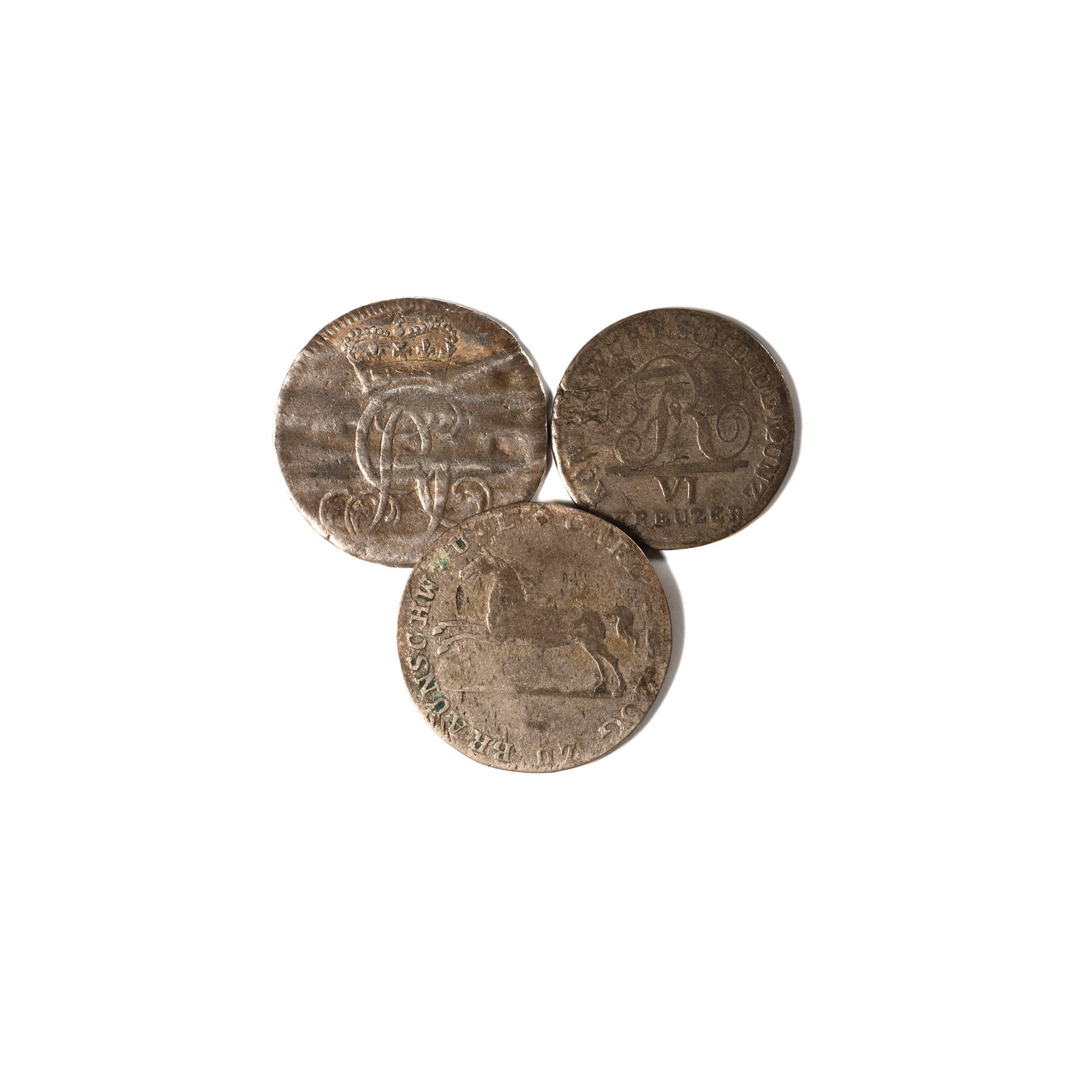 Group comprising: mixed issues, 1/12 thaler (1825), 6 kreuzer (1807) and 4 mariengroschen (1716); in annotated bags. 8.23 grams total.