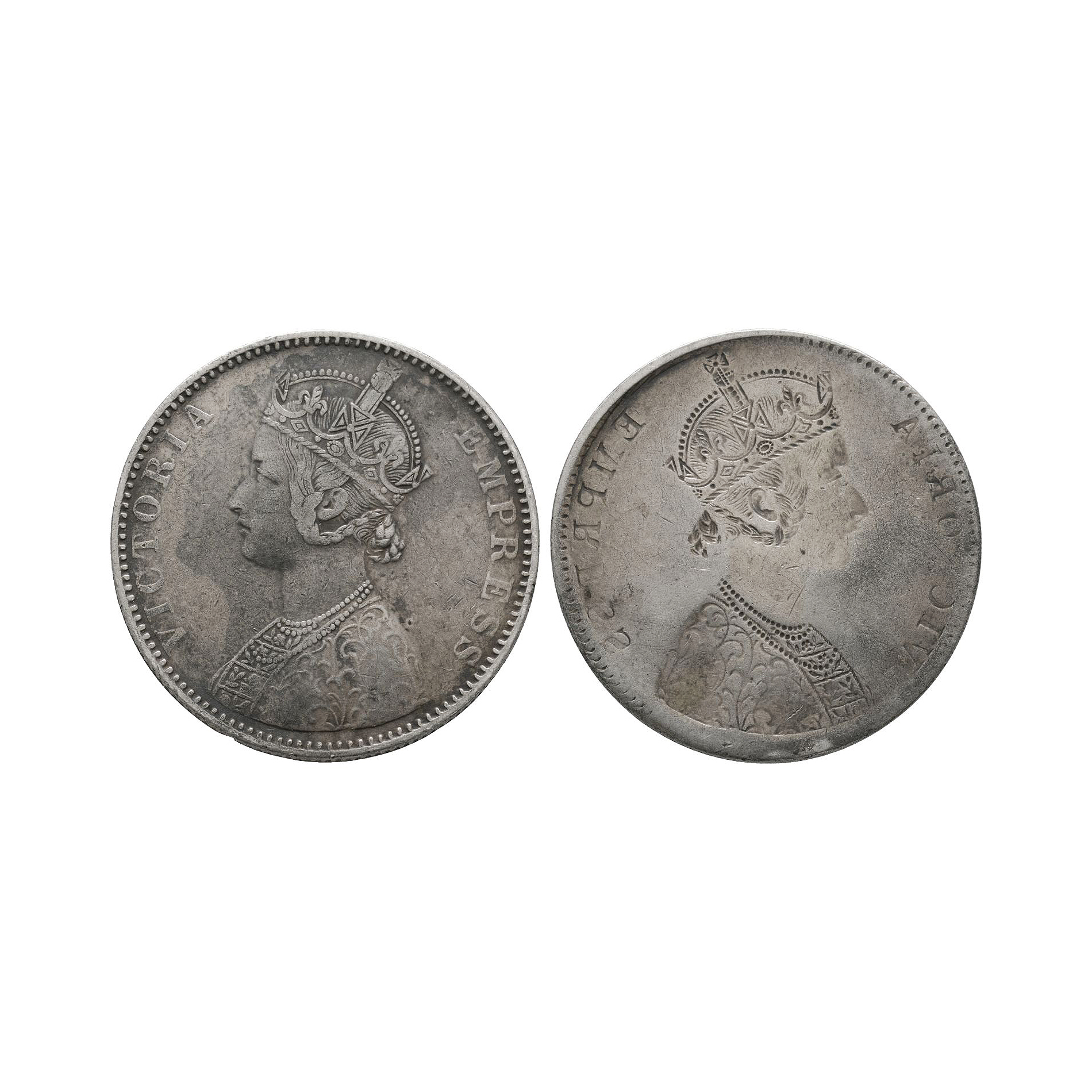 Bust A, Calcutta mint. Obv: profile bust with VICTORIA EMPRESS legend. Rev: incuse and reversed impression of obverse. 11.50 grams, 30.5 mm.