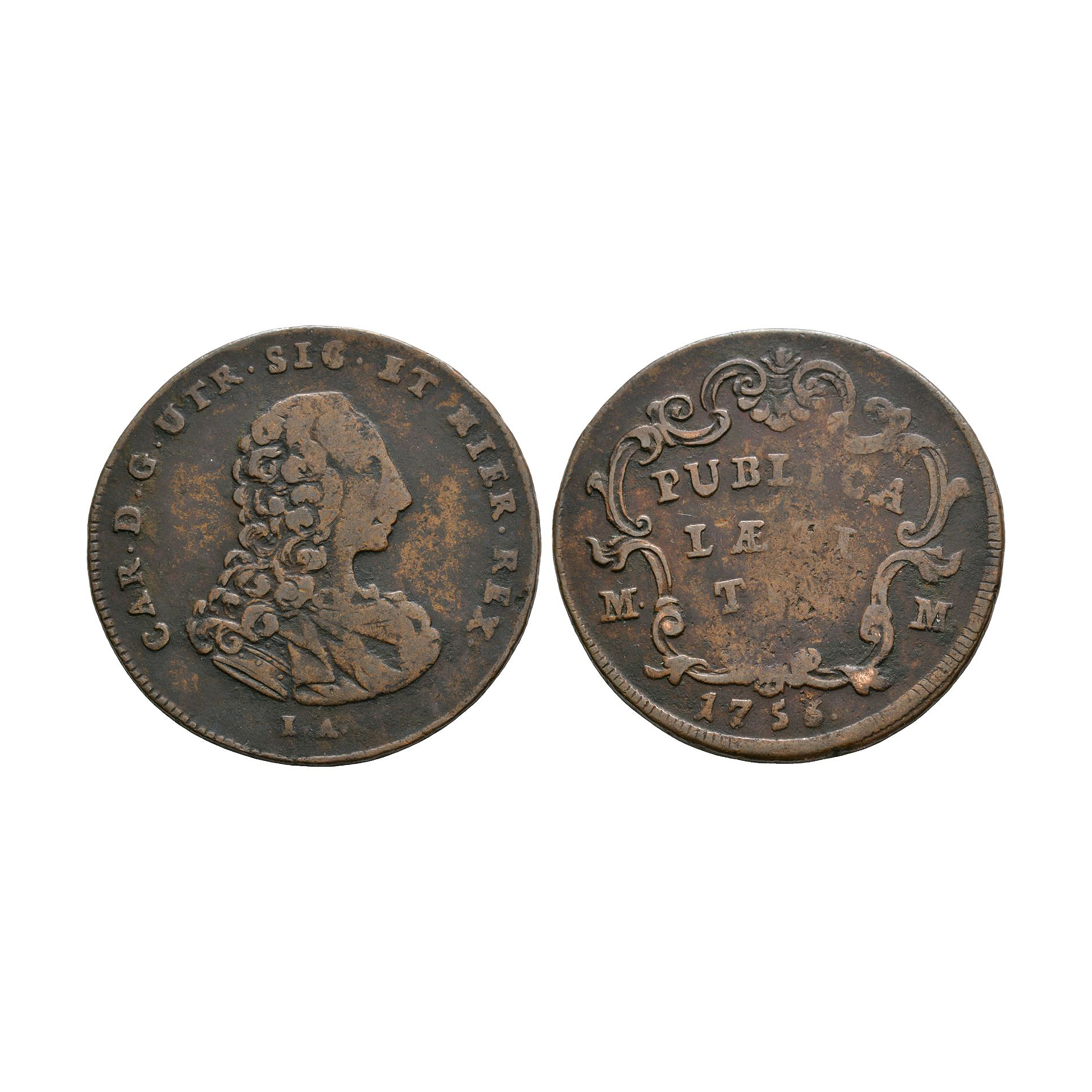 World Coins - Italian States - Naples and Sicily - 1756 - 3 Tornesi Dated 1756 A.D.