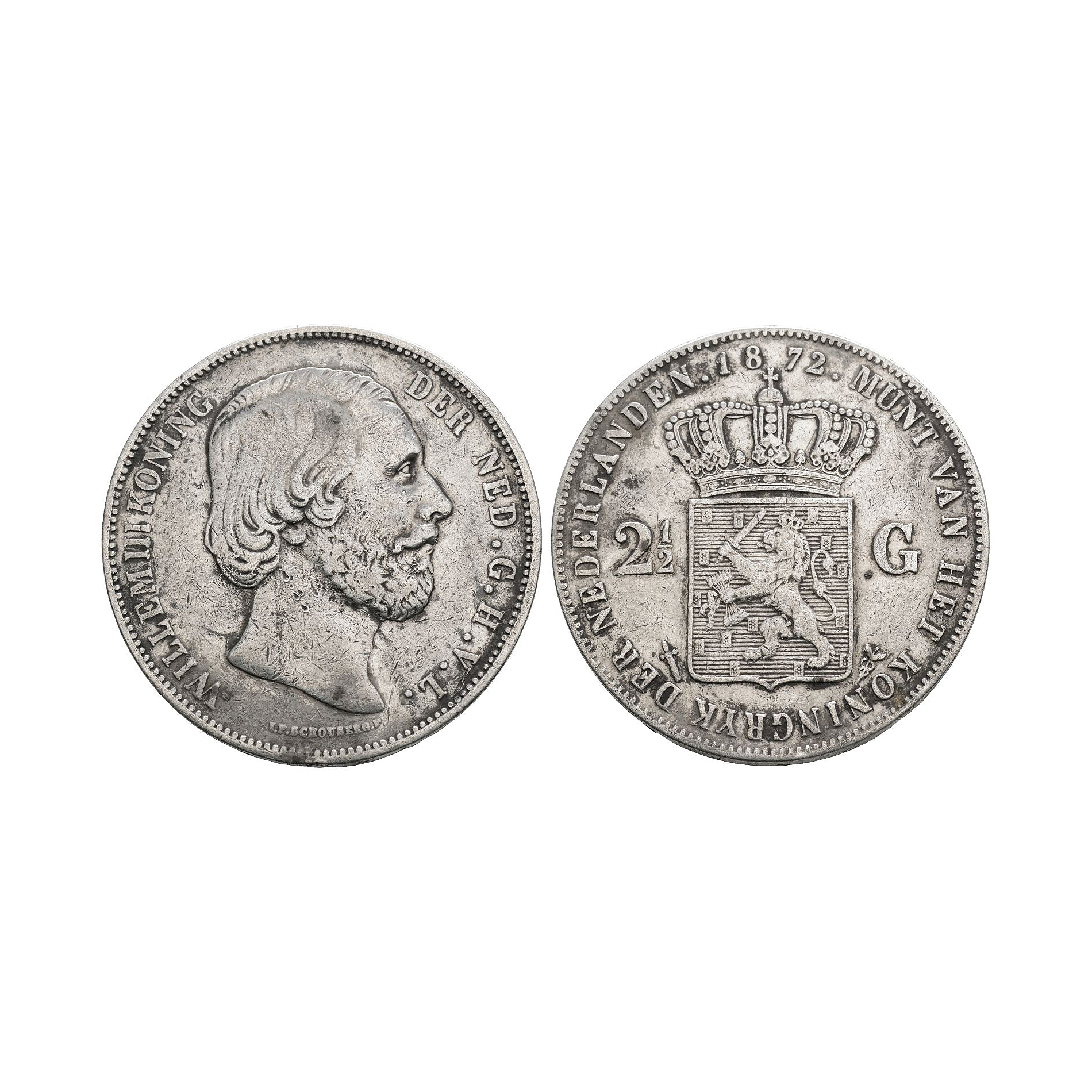 World Coins - Netherlands - Willhelm II - 1872 - 2 1/2 Guilders Dated 1872 A.D.