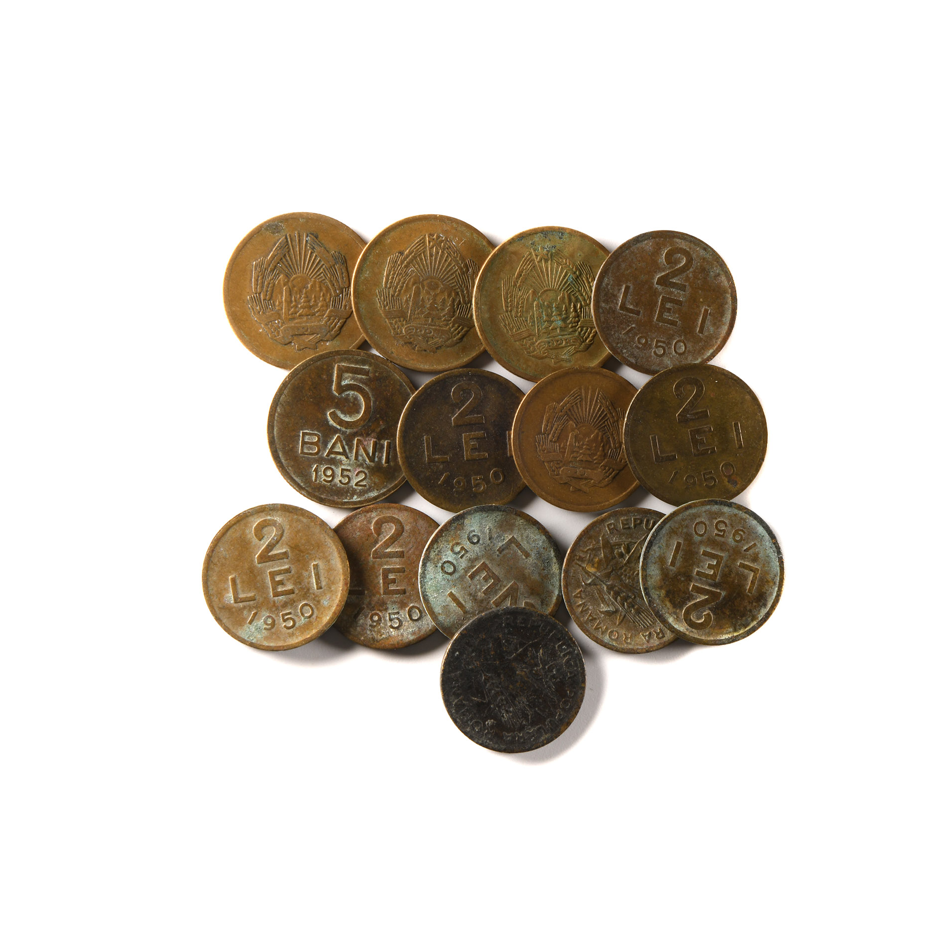 World Coins - Romania - Peoples Republic and Reform Coinage - 2 Lei, 3 & 5 Bani Group [13] Dated 1952-1957 A.D.