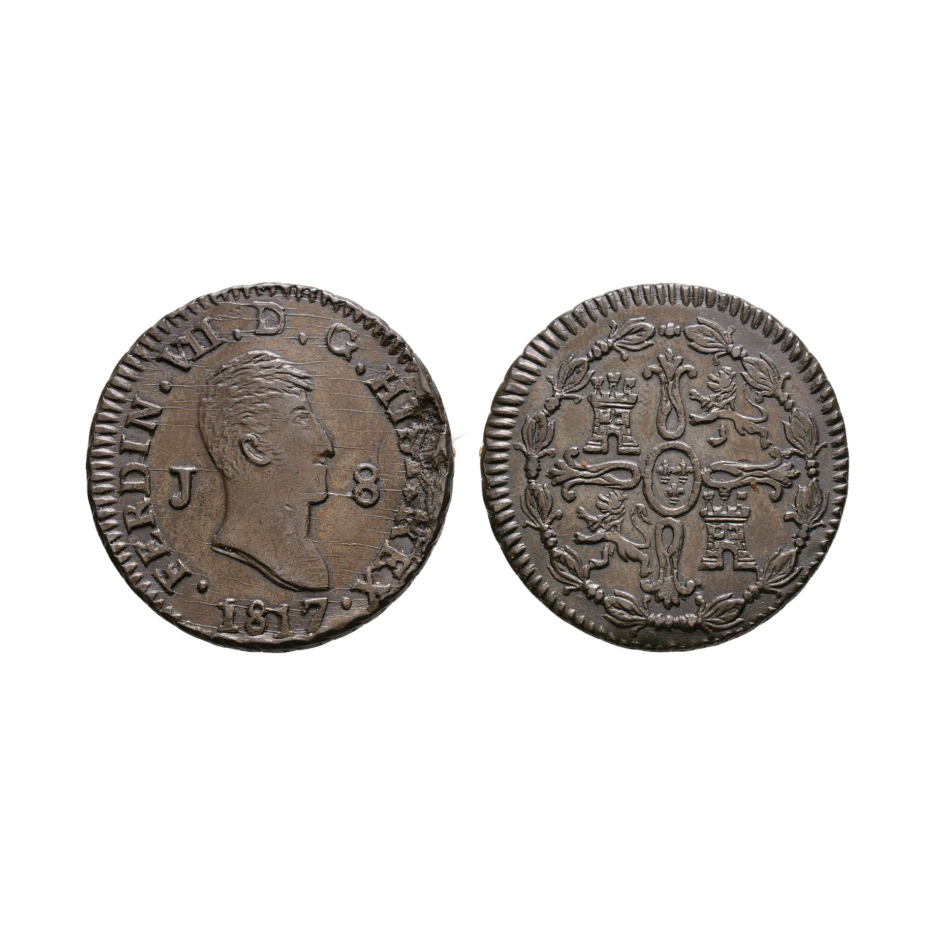 World Coins - Spain - Ferdinand VII - 1817 - 8 Maravedis Dated 1817 A.D.