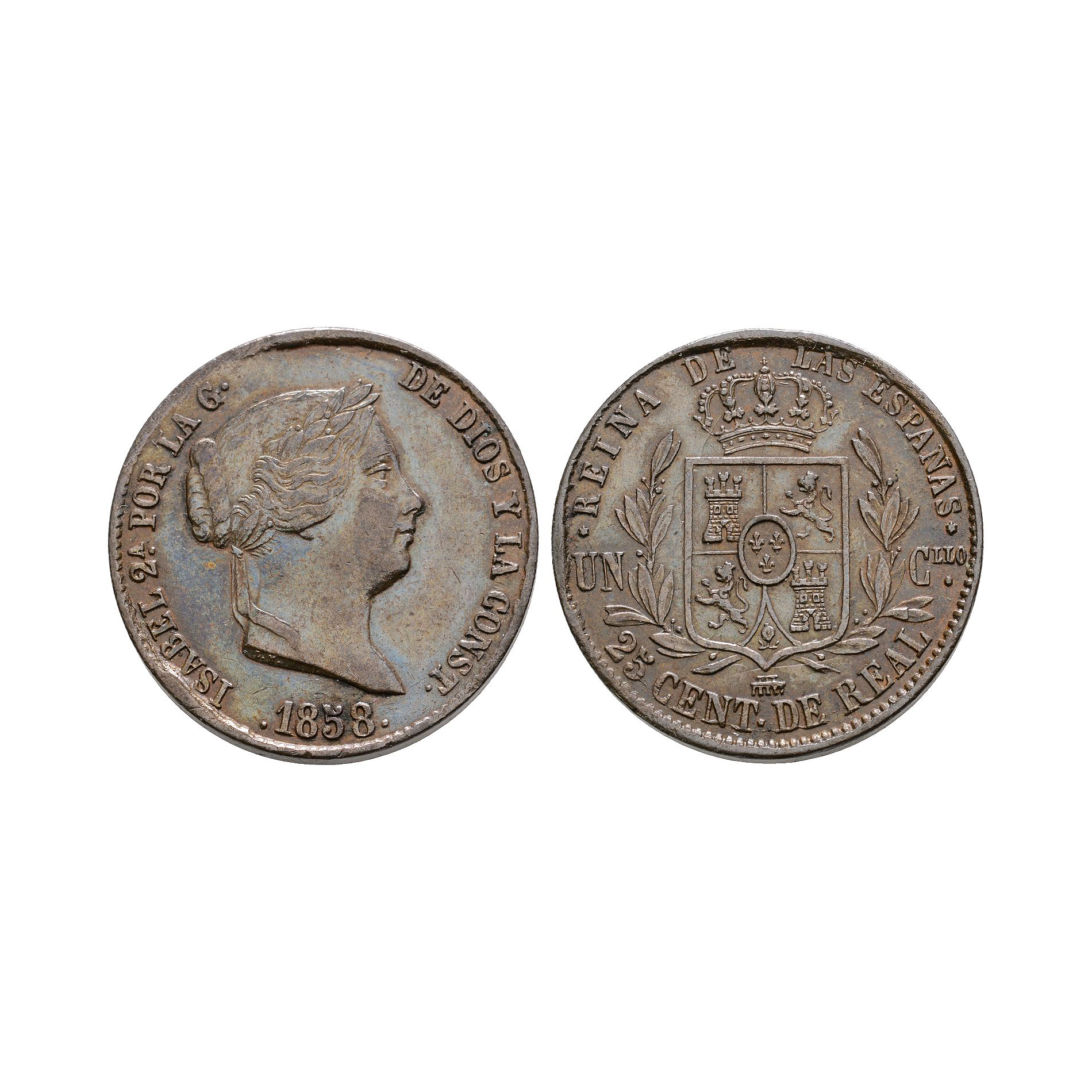 World Coins - Spain - Isabel II - 1858 - 25 Centimos Dated 1858 A.D.