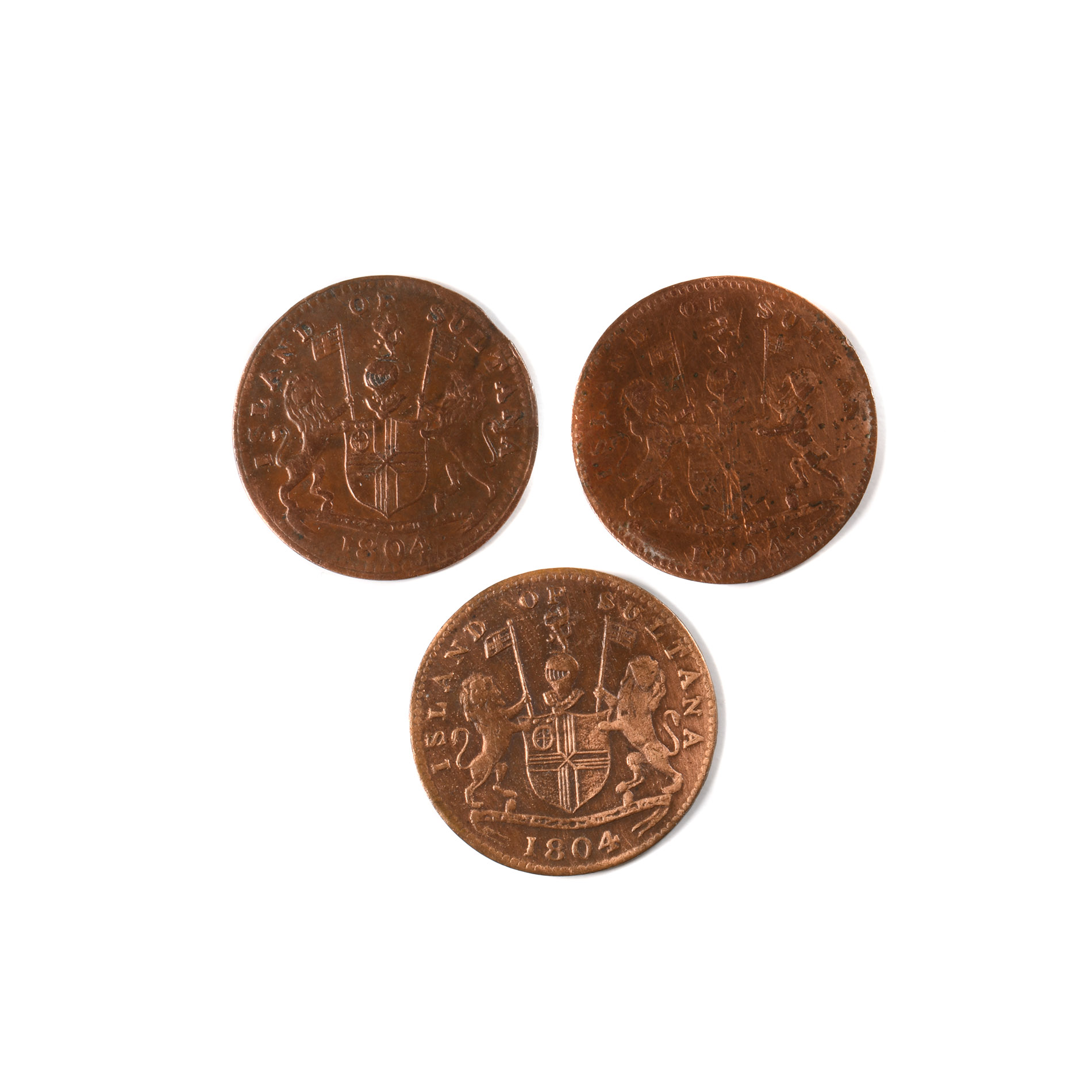 Obvs: arms with supporters and ISLAND OF SULTANA legend with date below. Revs: inscription with date; with ticket. 6.21 grams total.